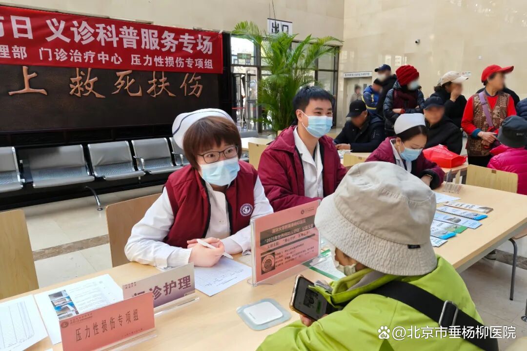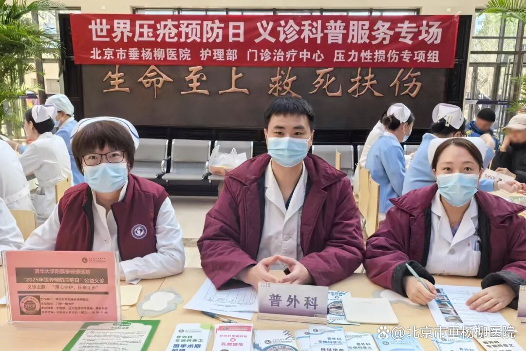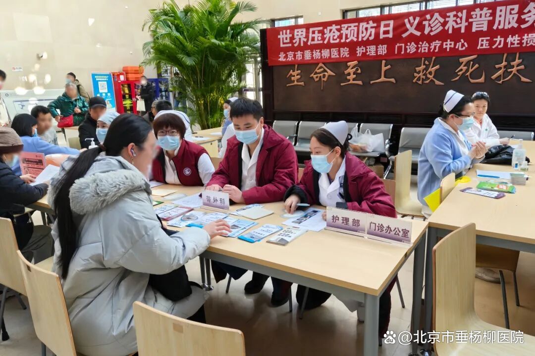 在世界压疮日到来之际,清华大学附属垂杨柳医院普外科于门诊大厅举办了以“关注皮肤健康,预防压疮,从你我做起”为主题的公益义诊活动。本次活动由普外科医生许臣、护士长孙彦超及伤口专科护士高丹等医护人员共同参与,旨在提升公众对压疮的认知与预防意识,帮助患者及家属掌握科学的护理方法。