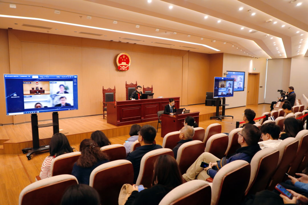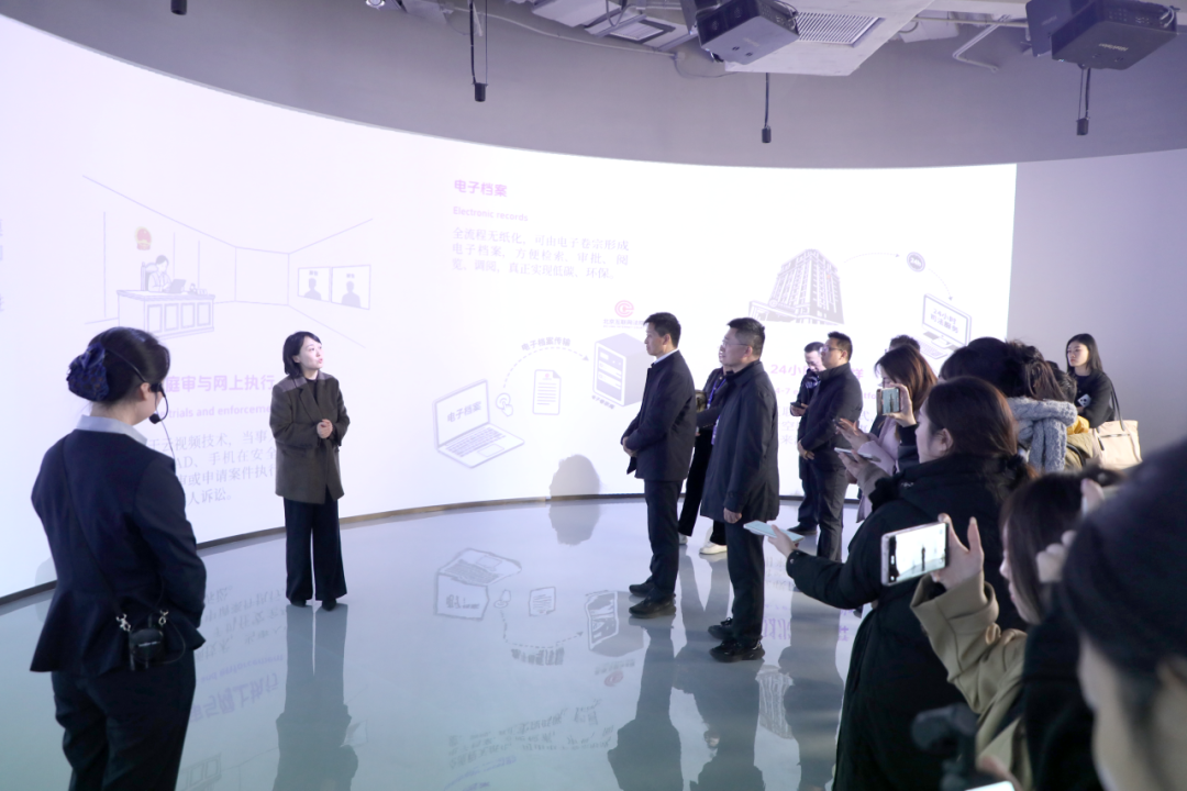 随后,来访嘉宾现场观摩北京互联网法院立案庭(诉讼服务中心)副庭长王彦杰在线开庭审理一起侵害作品信息网络传播权纠纷,沉浸式体验了在线庭审的全流程,充分感受到在线诉讼模式的高效便捷。