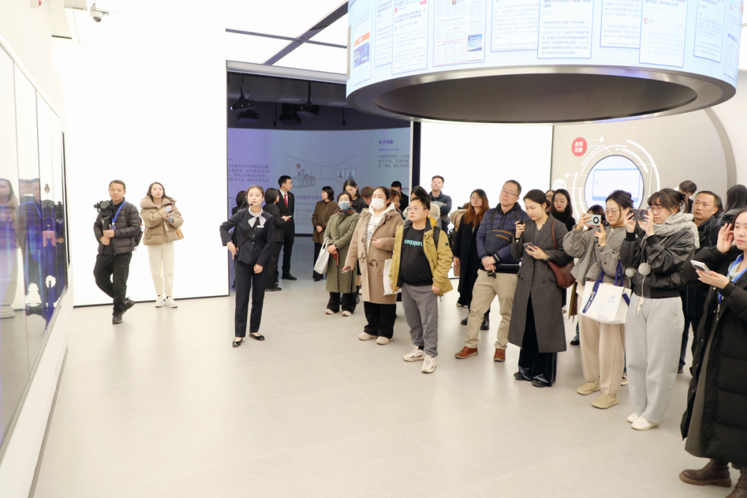 本次活动路线集结了在线诉讼服务体验区、党建文化展厅、首互未来展厅等多个核心展区。通过沉浸式环形屏体验、全流程在线诉讼动画、AI法官智能讲解等丰富形式,来访嘉宾直观感受了科技创新赋能司法变革的智慧法院建设成果,也深刻感知了北京互联网法院服务大局、司法为民的创新举措。