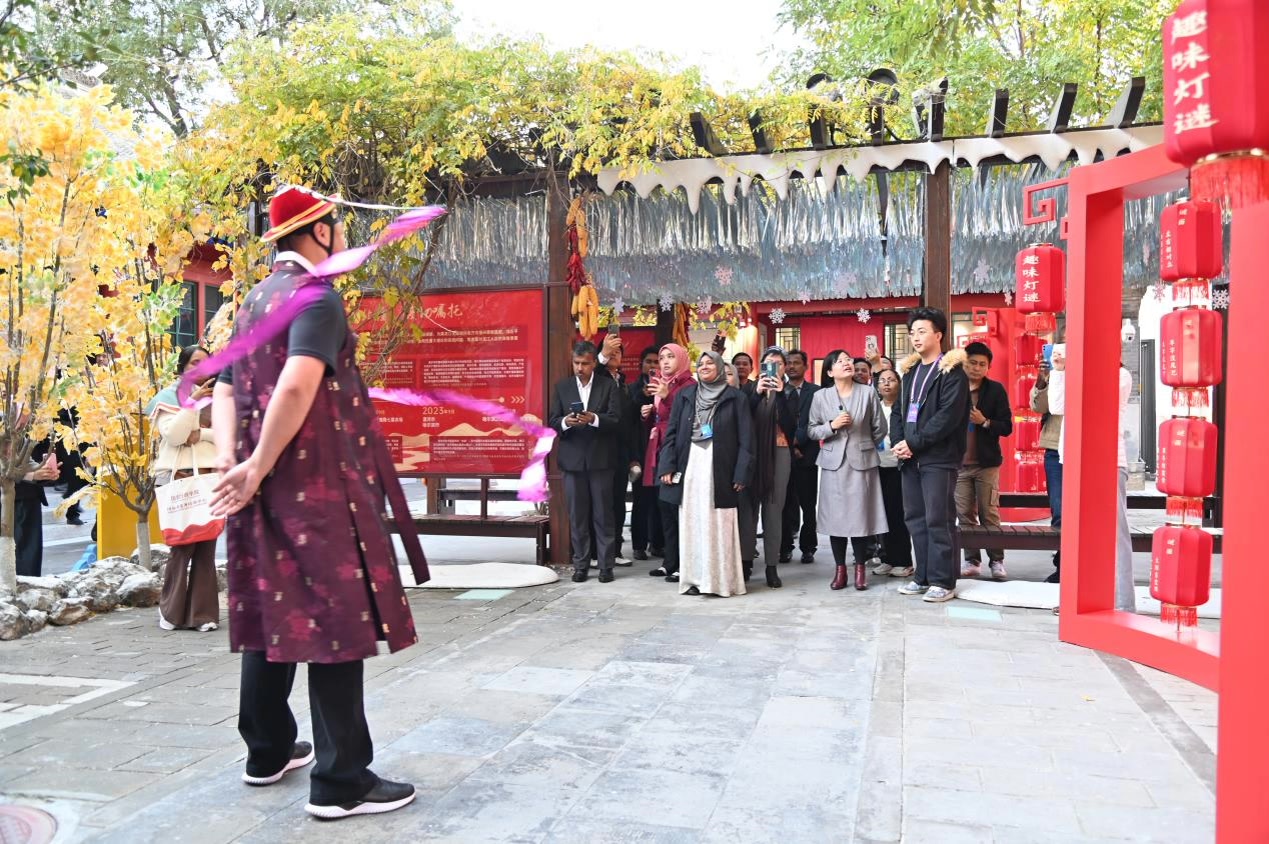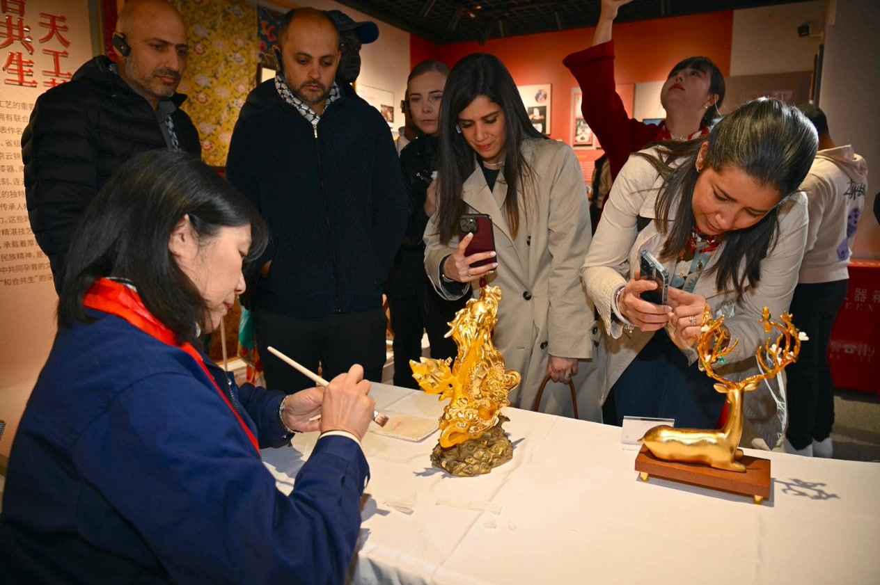 在蒙藏学校旧址东院中华优秀文化体验区内,来自黑龙江、江苏两地的非遗传承人向大家展示着象帽舞、苏工雕刻等传统技艺,不少国际友人跃跃欲试,零距离领略中国传统技艺的独特魅力。