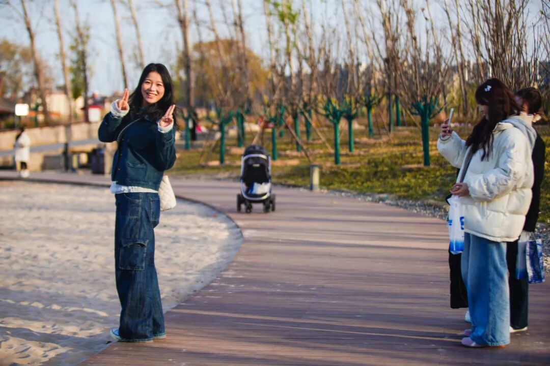 周末,这里迎来一批打卡的年轻人,海淀高校的大学生们也把这里当成了新的聚集地。“来这儿坐一会儿特别解压,我们同学在小红书刷到的,都叫它‘海淀阿那亚’,虽然看不到海,但有沙滩、有湖水、有夕阳,氛围感十足。”