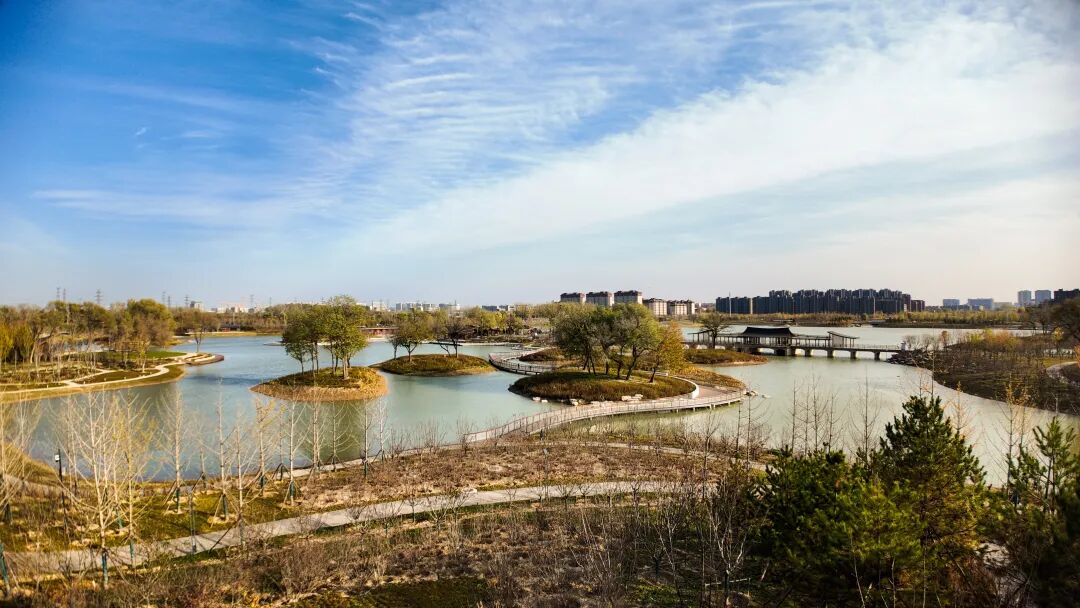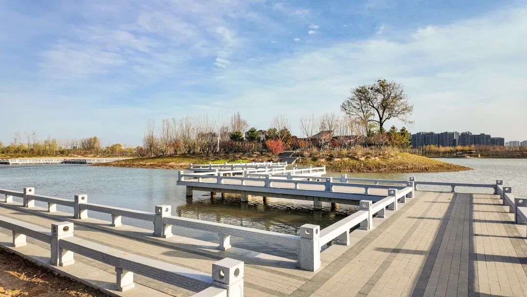 开阔清澈的“玉湖”是整个公园的视觉中心,两条长堤蜿蜒环绕湖面,十二座小岛星罗棋布,岛与岛之间以造型优美的桥梁相连,漫步其中移步易景,无论是俯瞰堤岛纵横的自然景象,还是近赏波光粼粼的湖面,都能沉浸式感受湿地的独特魅力。