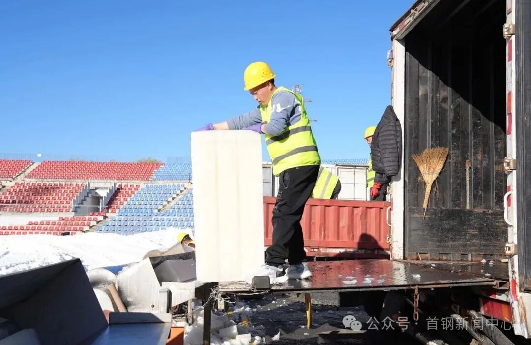 造雪现场9台碎冰机同时启动,两台压雪车相互配合,总造雪量将达到7000立方米。“这是此项赛事第四次在首钢园举办,我们拥有丰富成熟的服务保障经验。”首钢体育园区运营事业部场地设备设施管理刘永亮表示,“截至目前,造雪量已超过20%,预计11月27日完成全部造雪作业,30日完成赛道塑形。首钢体育团队在此期间积极开展各类服务保障,包括压雪车保养、赛道安全设施维护、能源保供及现场协调等工作,我们会全力以赴确保本次赛事顺利进行。”