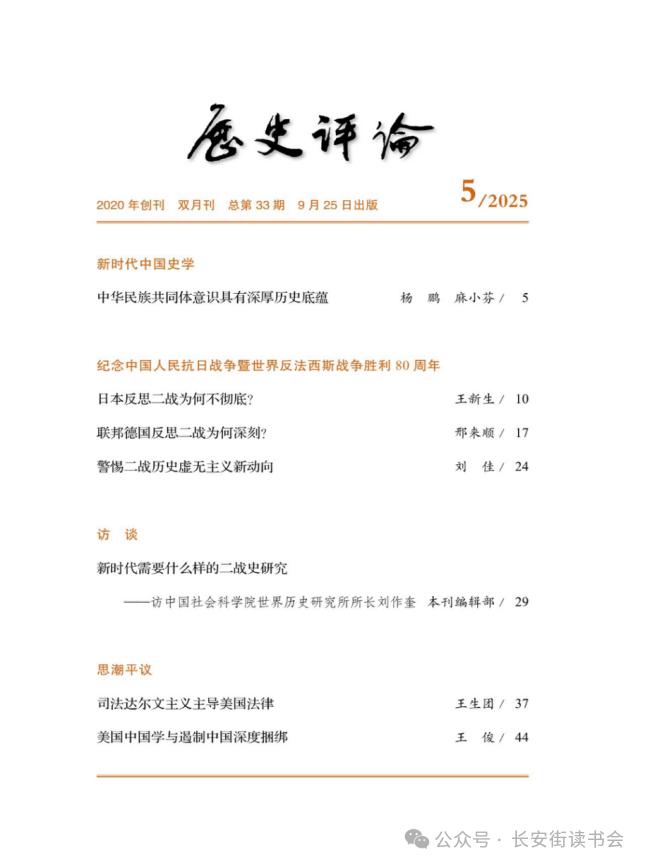 刘作奎在《历史评论》2025年第5期撰文《新时代需要什么样的二战史研究》指出,近年来,国际学界二战通史研究成果丰富,与此同时,质疑甚至否认中国、苏联对战胜法西斯主义作出决定性贡献的观点也长期存在。在世界百年未有之大变局和中华民族伟大复兴战略全局相互交织激荡的时代背景下,一定要讲好中国的抗战故事,弘扬中华民族的抗战精神,凸显中国人民在世界反法西斯战争中的地位和作用,展现中国共产党作为全民族抗战中流砥柱的光辉形象,清晰响亮地发出历史正声。中国社科院世界历史研究所主编的《新编第二次世界大战史》正是对这一时代命题的学术回应。该书系统呈现中国以巨大民族牺牲支撑世界反法西斯战争、与盟友并肩作战的历史事实,多角度展现中国共产党作为全民族抗战中流砥柱的历史地位,以丰富翔实的史料,阐明“忘记历史就意味着背叛,否认罪责就意味着重犯”的历史警示与伦理底线,把战争记忆与当代全球治理有机联系起来:反对霸权主义和强权政治,坚守联合国宪章,推动构建人类命运共同体,防止悲剧重演,共创和平发展之未来。