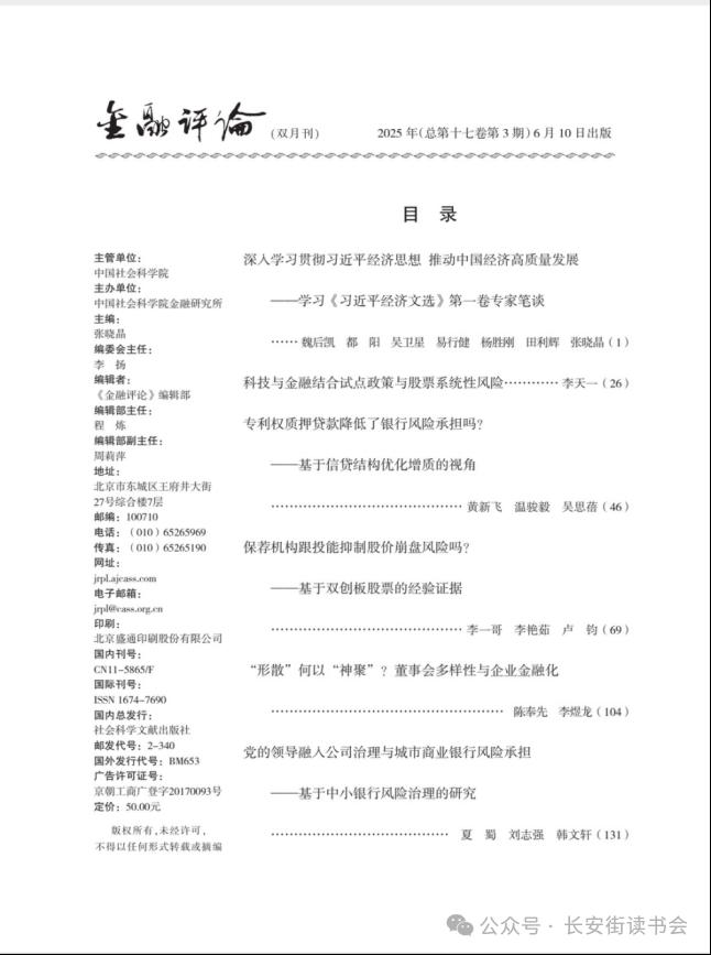 主办单位:中国社会科学院金融研究所