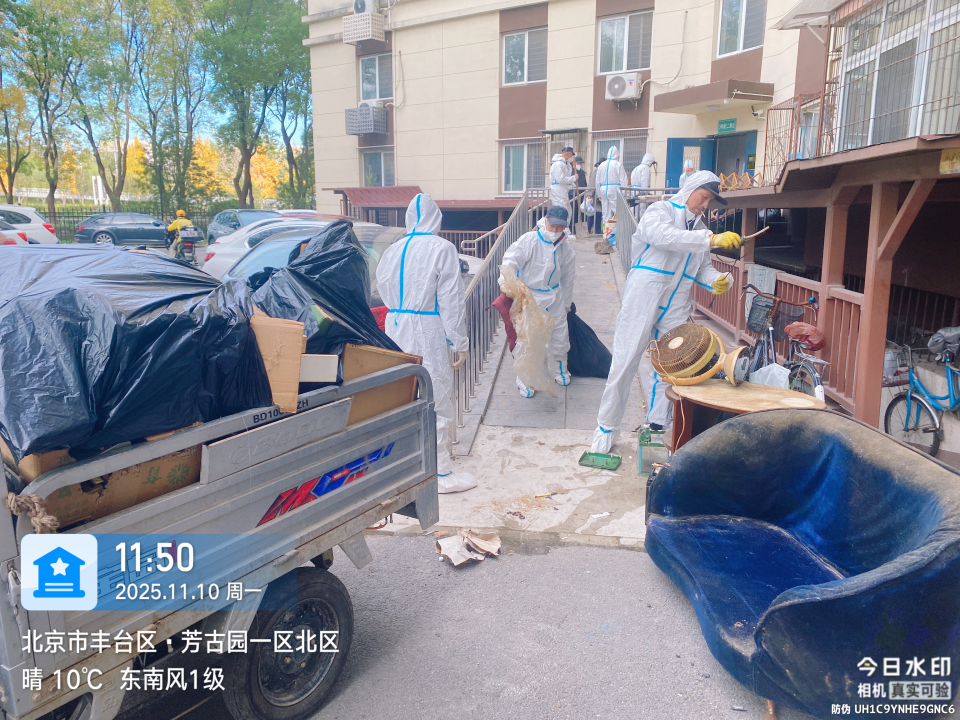 11月10日,“先锋办”工作人员联合保洁人员耗时一整天,分工分拣、打包、清运出6车垃圾,随后对房屋及楼道全面消毒,重点清洁卫生死角,还放置清新剂,排查水电和烟感设施。后续工作人员将持续为刘大爷提供生活照料与情感慰藉,用贴心服务化解独居老人的孤独与困境,践行“先锋办为民事”的宗旨。