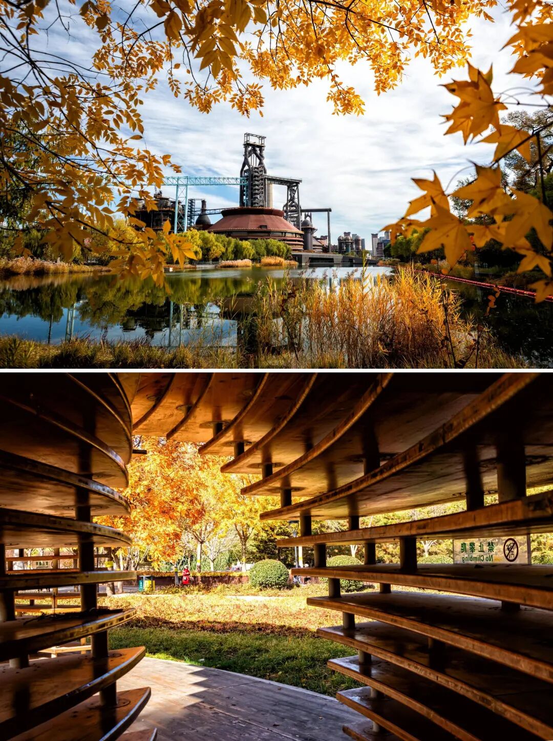 在石景山,记录秋末最后的斑斓。初冬风暖,秋意未散:红叶如霞晕染天际,银杏似金铺满小径。首钢园工业肌理映着秋景,古建飞檐流转光影,每一处都藏着温柔。漫步其间,落叶簌簌,色彩交织,随手定格皆是画卷。趁秋韵尚存,赴这场限定之约,将石景山的绚烂秋意,妥帖藏进冬日记忆,成为岁末温暖注脚。