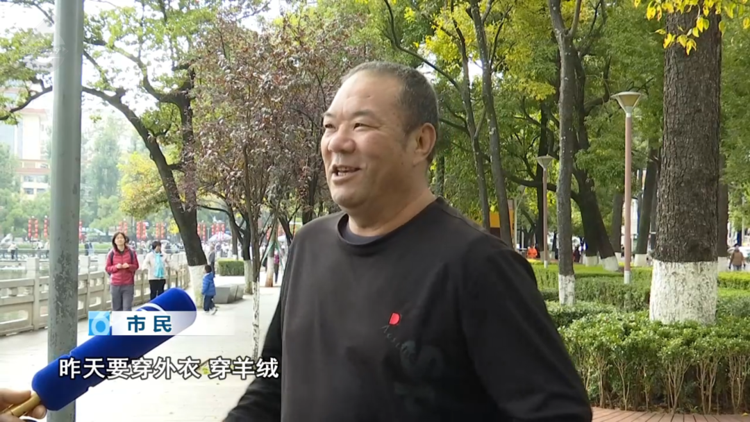 市民:“昨天要穿外衣,穿羊绒,昨天冷,今天好一点。”