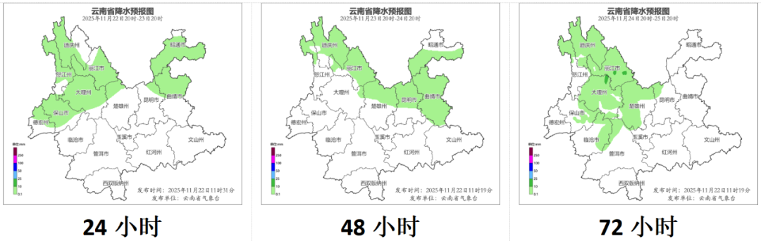 迪庆州高海拔地区阴有小雪或雨夹雪,昆明市北部、楚雄州、丽江市、迪庆州、怒江州北部、大理州、保山市东部、临沧市东部、普洱市北部阴有小雨局部中雨,普洱市南部、西双版纳州、临沧市西部多云间阴,其他地区晴。
