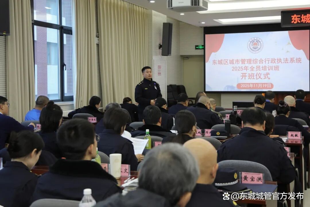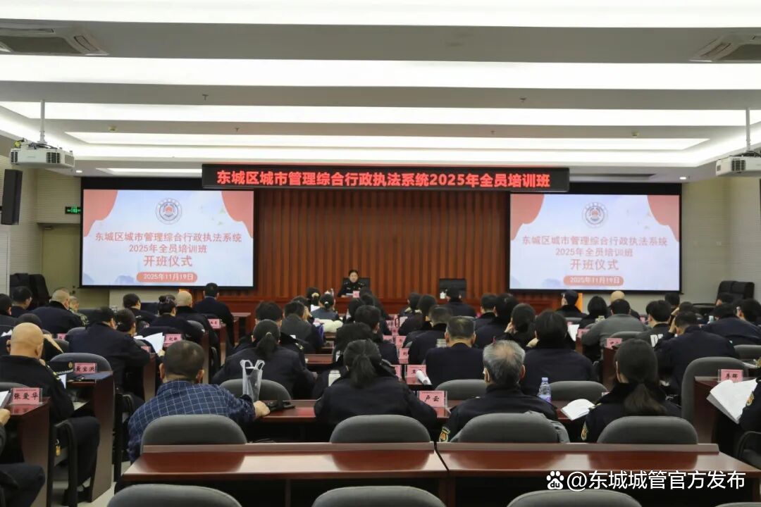 为全面提升全区城管执法队伍履职能力和专业素养,促进知识更新,2025年11月19日至11月21日,区委组织部、区城管执法局联合举办了东城区城管执法系统2025年全员培训班,涉及区局机关和17个街道共100人参训。本次培训是时隔五年后首次开展的线下全员集中培训,有力助推了东城区城管执法系统队伍建设取得新提升。