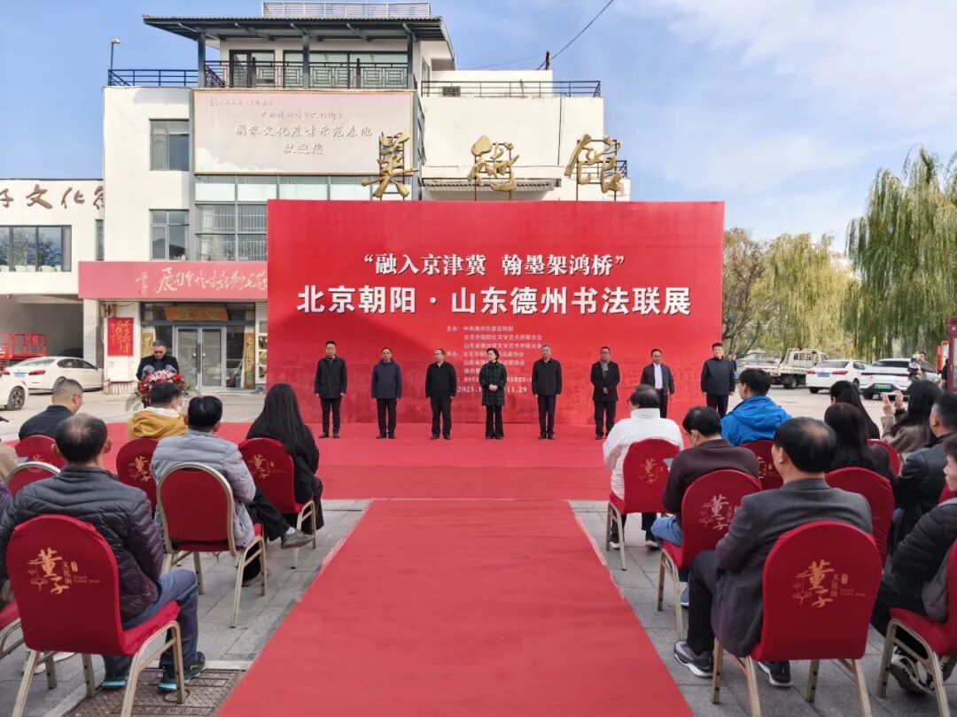 北京市朝阳区文联党组书记、常务副主席杨立亭,北京市朝阳区文联四级调研员姜军,北京市朝阳区书法家协会主席程度,德州市政协副主席、民盟德州市委会主委张苹,德州市委宣传部副部长、市文联党组书记李文豪,德州市文联主席、民建德州市委主委马春荣,德州市文联党组成员、副主席盖其栋,德州市书法家协会主席张春晓等领导出席活动,共同见证两地文化交融的重要时刻。