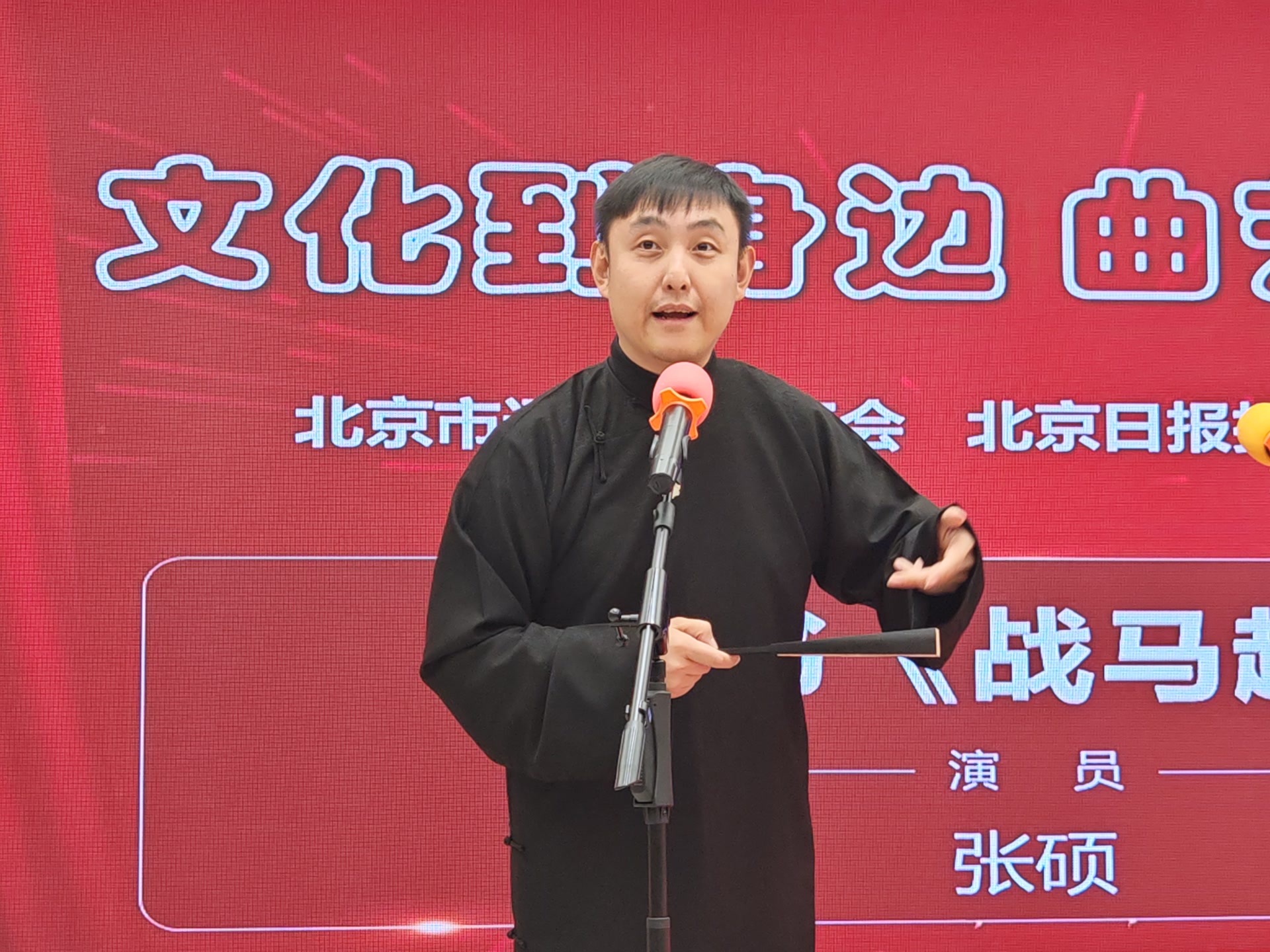 马星野表演的快板《百山图》,节奏鲜明、叙事生动,勾勒出山水画卷的壮阔意境,观众在韵律中沉浸。陈娜娜带来的西河大鼓《玲珑塔》,以婉转唱腔配合鼓点节奏,重现传统曲目中的精巧结构,赢得听众专注聆听。辛明璋与高明菲合作的双簧《逗您乐》,借助默契演绎与幽默互动,调动全场欢快情绪,反响热烈。张硕演绎的评书《战马超》,语言铿锵、情节紧凑,再现历史故事的激烈场面,引人入胜。马博瑞与张思宇呈现的相声《诗词歌赋》,将传统文化知识与现代生活趣事结合,通过巧妙对话引发观众思考与共鸣。整场活动由陶俞汐主持,环节衔接流畅,节奏掌控得当。