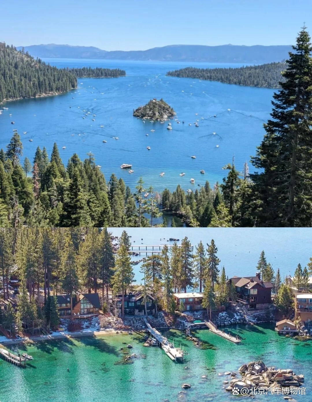 太浩湖(英文:Lake Tahoe)又译作塔霍湖,位于美国加州与内华达州之间的高山湖泊,在内华达州首府卡森城以西约10英里的地方。它是北美最大的高山湖泊,海拔1897米。太浩湖四周由山峰环抱,湖水澄净湛蓝,冬天降雪期长达8个月,路面经常积雪盈尺,但太浩湖的湖水不会结冰。湖底异常地深,最大深度为501米(1645 英尺),是美国第二深的湖泊。湖泊蓄水量约为1500万立方千米,蓄水量全世界排名第26位。湖周围有上千家的旅馆,其中有高级的豪华度假旅馆、中等的野营小木屋和价格亲民的汽车旅馆,还有为数众多的公寓短期出租,是美国人非常喜爱的荡舟滑雪度假胜地。