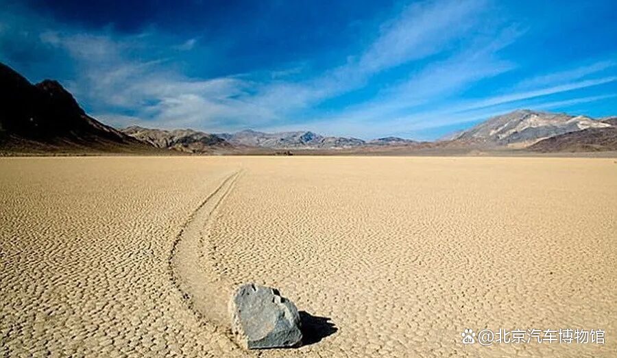死亡谷最神奇的地方莫过于神秘的石头漂移现象。石块在无人工干预、无动物活动痕迹的平坦地表自发移动,移动路径呈现直线、弧线或折线形态。轨迹特征表明石块底部与地面接触面存在力学作用,但地表未发现外力作用痕迹。科学家推测该现象可能与季节性的地下水位变化有关。