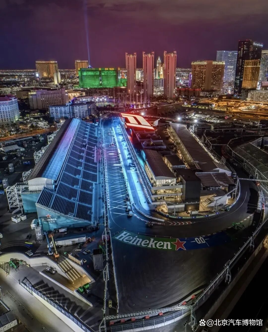 2023年拉斯维加斯带着全新规划的街道赛道重返F1赛历,充分利用了拉斯维加斯丰富的酒店资源和“不夜城”的别号带来酣畅淋漓的夜赛盛宴。从夜空中俯瞰拉斯维加斯赛道,宛如一头可爱的“小猪”拉斯维加斯街道赛道总长6.12公里,在目前的F1赛历中拥有仅次于斯帕赛道的单圈长度,赛道的整体布局非常“单刀直入”,特别是拥有一条长达2公里的超长直道,赛车可以在这条直道上达到342km/h的最高时速。
