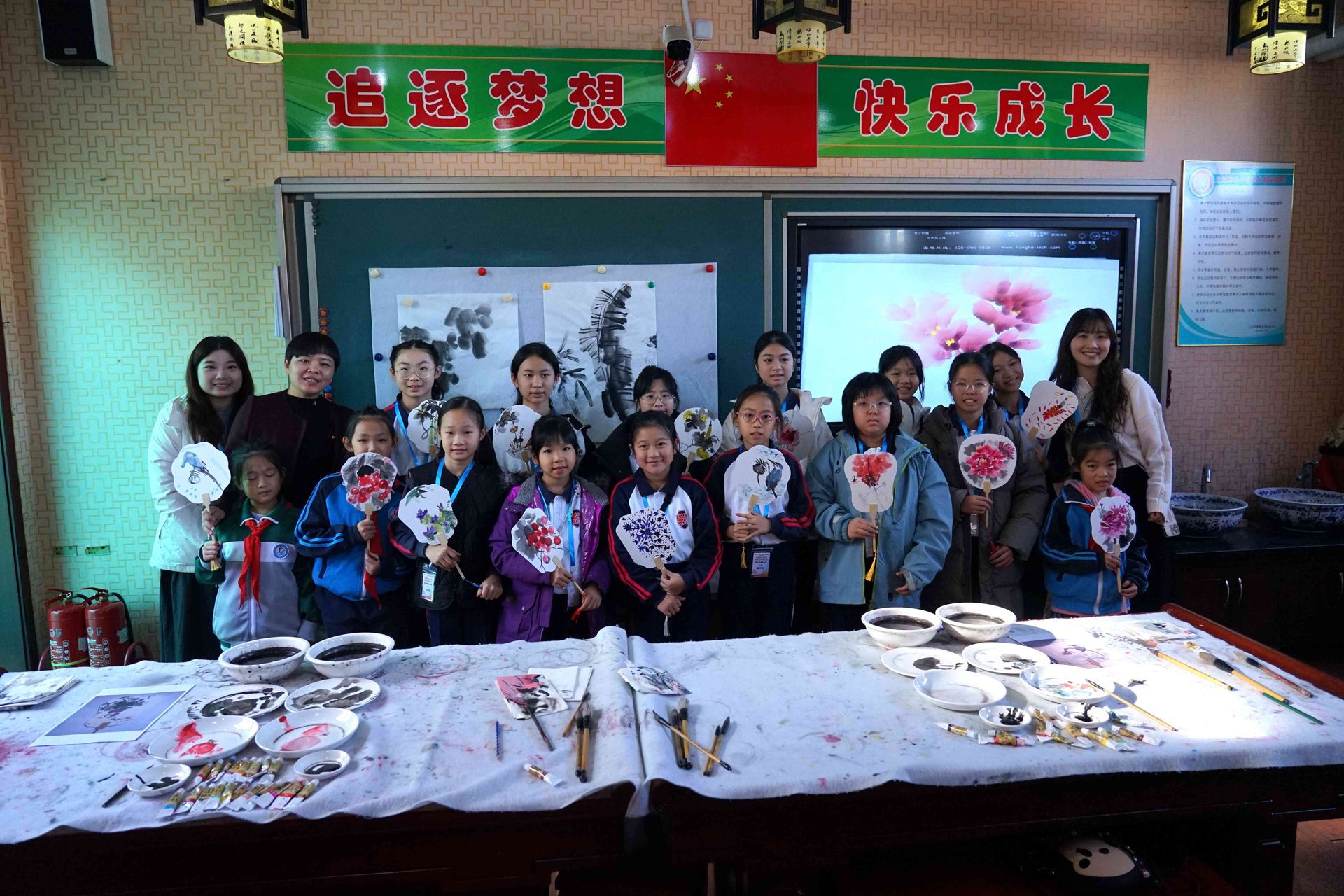 非遗体验环节是本次活动的重点之一。香港师生分为三组,分别参与书法、团扇绘画和桃木编绳等传统文化体验课程。在书法社团,两地学生共同执笔,学习书法基本技法,书写“同根同心”;在团扇社团,学生们绘制山水花鸟,表达美好情谊;在桃木编绳社团,大家动手制作手链等饰品,体验传统工艺的乐趣。通过互动与合作,学生们沉浸式感受中华优秀传统文化的独特魅力。