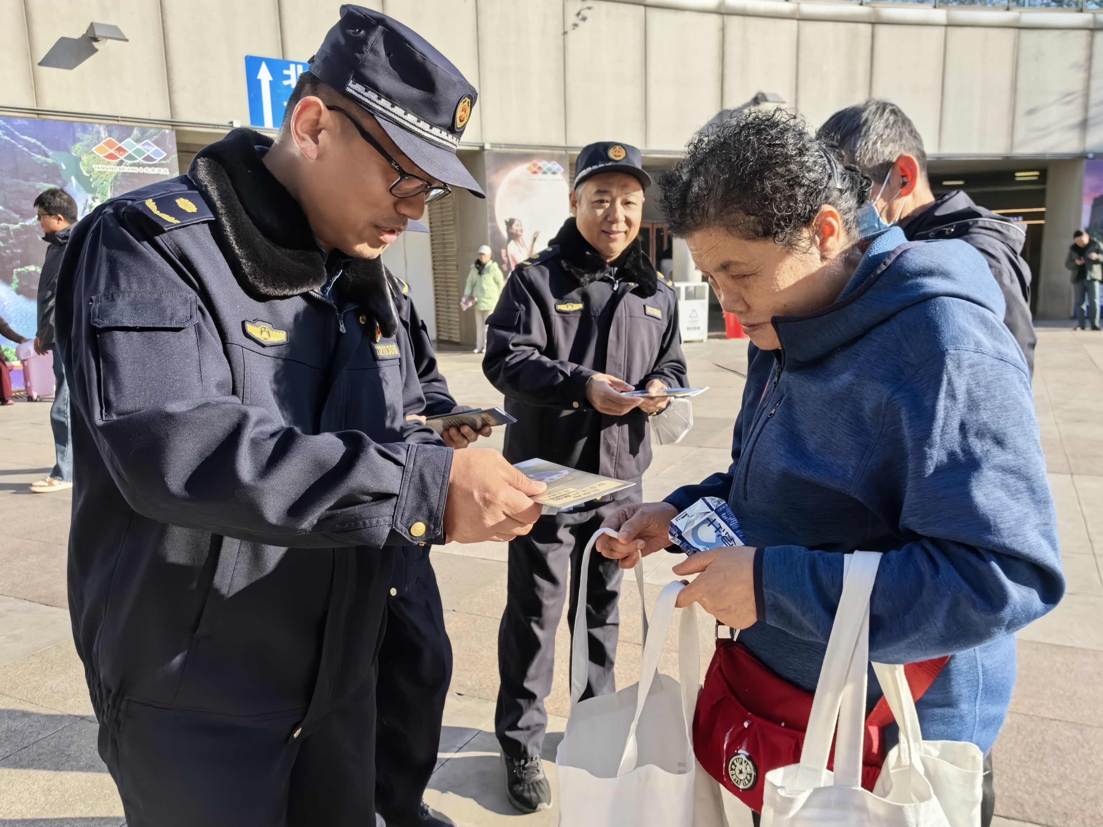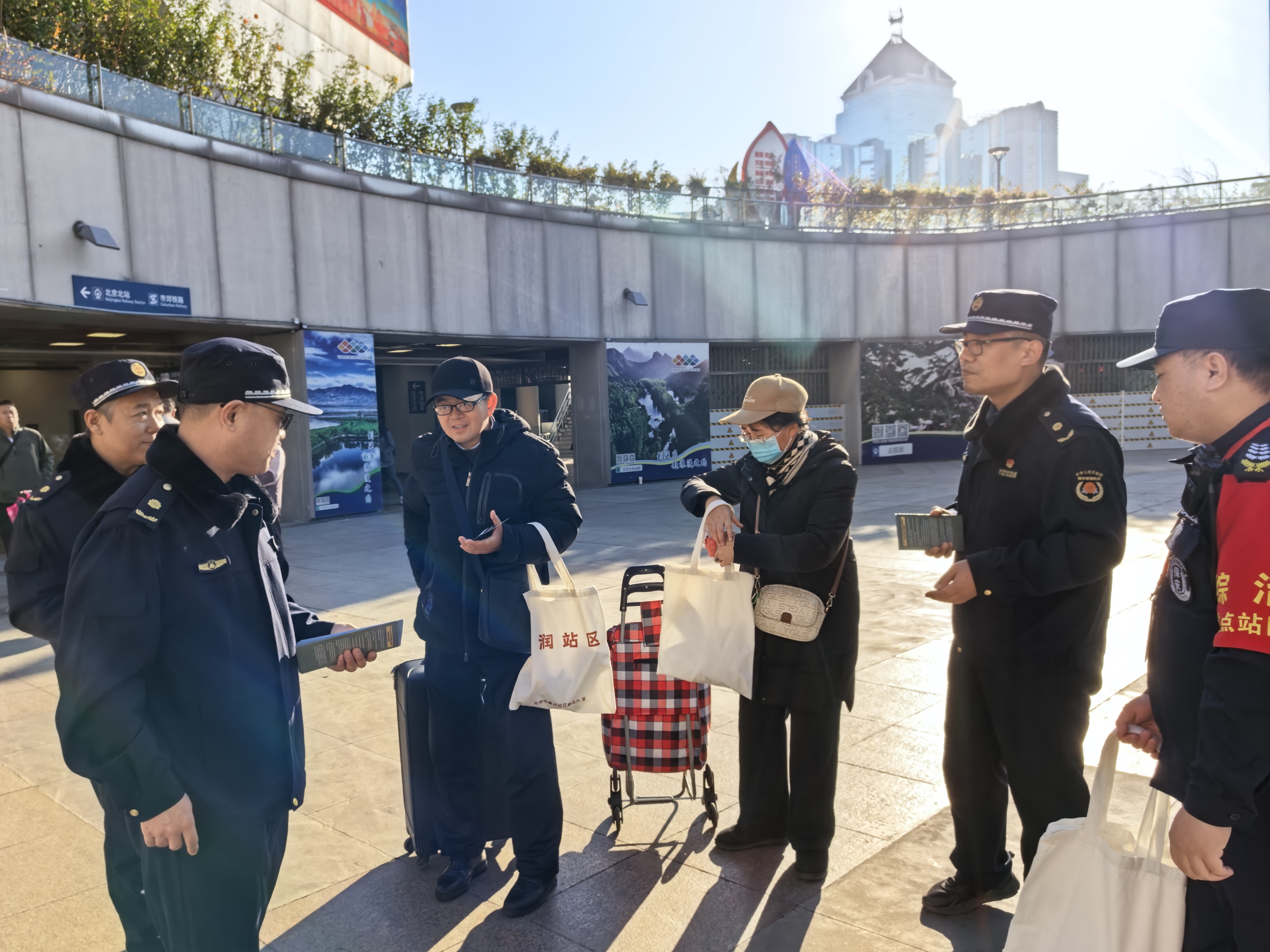 “阿姨,进入冬季,安全用燃气非常重要,多掌握一些检查、排查的方法,可以防范风险,比如咱们家燃气要使用金属软管,最早的橡胶软管已经不能用啦。”市城管执法局重点站区分局北京北站地区执法大队队员一边为旅客发宣传折页一边说道。