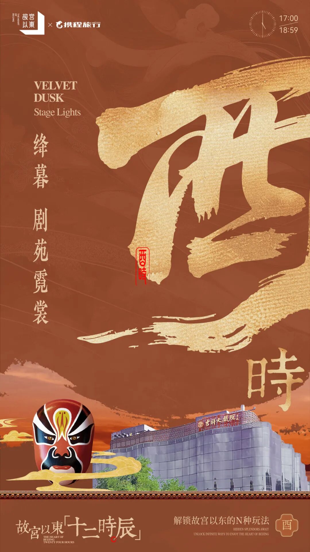 酉时的吉祥大戏院亮起暖灯,“空中剧院”的玻璃幕墙映着夕阳余晖。后台内,演员正在勾脸、穿戏服,水袖翻飞间尽是韵味;前厅的戏曲展览讲述着“四大名旦”的传奇。夜幕降临,演出开场,唱腔与乐器声交织,展现“戏剧东城”的独特魅力。