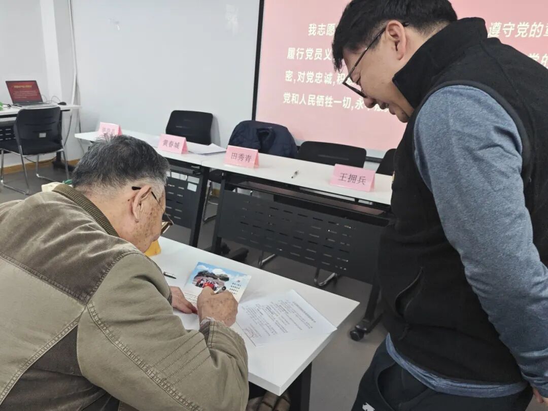 不少党员提笔写下“初心不改,薪火相传”“聚力新程,共护家园”等寄语,字里行间满是对过往的眷恋与对未来的期许。最后,全体党员起立,举起右拳庄严重温入党誓词,铿锵有力的誓言回荡在会场,既是对初心使命的回望坚守,也是对新征程的郑重承诺。
