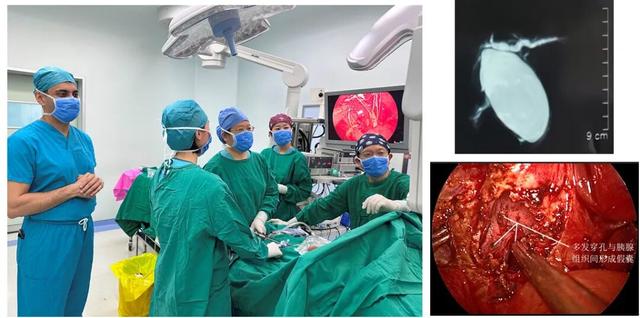 其中,两例复杂病例的成功救治尤为亮眼。一例为曾接受两次开腹手术的胆总管囊肿患儿,术后反复出现吻合口狭窄与胆管炎,转诊时已术后6年。李龙主任医师、刁美主任医师、张一帆医师团队创新采用经脐单切口腹腔镜技术,将患儿左右肝管纵劈至 3 级肝管起始部,吻合口扩大至 3cm,彻底解决狭窄问题。另一例为孕24周确诊的新生儿胆总管囊肿患儿,生后8天囊肿增至8cm并伴感染性休克早期症状,首都儿童医学中心多学科团队通过绿色通道高效协作,在患儿入院24小时内完成急诊手术。