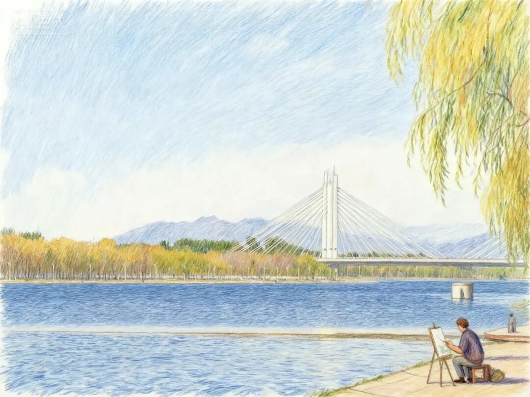 岸边长椅上,老人们闲话家常,孩子们在草地上嬉戏。这幅人与自然和谐共生的画面,温暖而治愈。