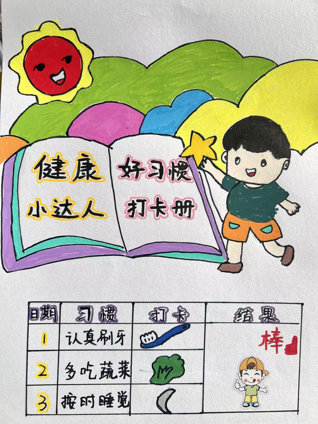 音乐课上,孩子们学唱《洗手歌》《健康歌》,用律动传递健康快乐;美术课上,绘制“我的健康身体”,标注健康习惯与责任标语,让健康意识在艺术中生根。
