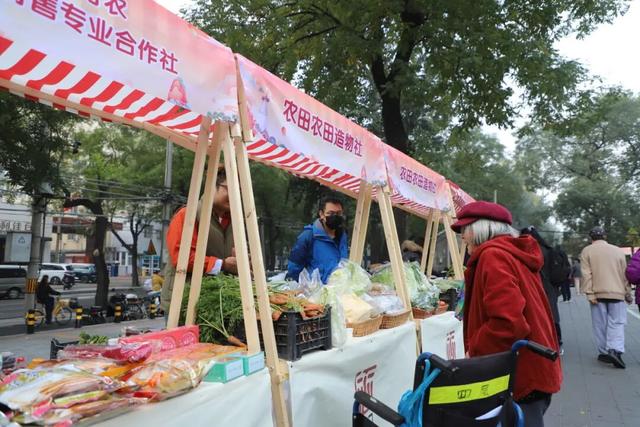 市集活动当天,数十个服务展位有序排列,水果色泽诱人、蔬菜新鲜水灵、鲜花芬芳扑鼻……现场热闹非凡。市集不仅联动了“北京优农”进社区、中国老龄事业发展基金会“双健康进社区”等项目,还邀请了西城区生活服务企业联合会及辖区内的为老服务商,带来京郊果蔬、地方特产、异地康养、辅具租赁、养老咨询、公益理发、医养结合等100多种产品和服务,覆盖“医、食、住、行”方方面面,精准匹配老人的日常需求。