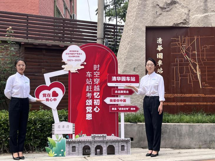 2025年7月1日,在中国共产党成立104周年之际,承载着进京“赶考”初心使命的红色地标——清华园车站旧址,以全新姿态迎接观众到来。7月1日至7月31日,由三山五园文化艺术中心主办的“时空穿越忆初心 车站赶考颂党恩”主题文化打卡活动温暖启幕,邀请广大市民群众到场参与活动,在光影与文创的交织中,触摸红色记忆,共庆党的华诞