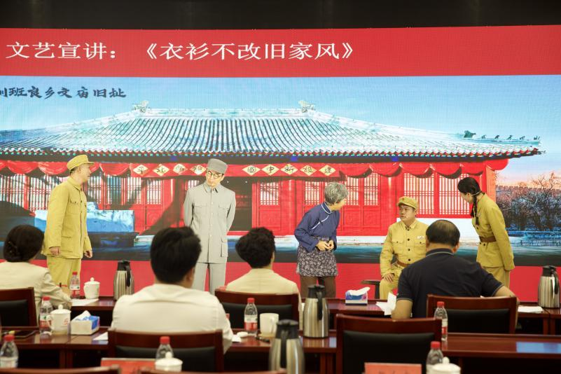 接管北平干训班(良乡文庙)旧址深挖红色文化富矿,创新开展“流动中的党史”特色工作,将红色教育融入“强国复兴有我”群众性主题宣传教育活动,构建“理论宣讲+情景教育”立体化传播模式。一方面,着力用好市级宣传平台,9月12日,在“理论+百姓+文艺”特色宣讲全市调研汇讲中推出专题党课《良乡集结培训是“进京赶考”前的战略举措》,让接管北平干部在良乡培训的红色故事走进更多人视野。另一方面,注重推动资源向基层倾斜,9月28日,依托房山区“强国复兴有我”百姓宣讲活动,沉浸式小戏《衣衫不改旧家风》在阎村镇开展文艺宣讲,将革命历史转化为鲜活教材,让观众在沉浸式体验中感悟初心使命。