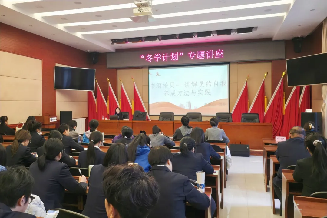 11月24日,“冬学计划”第二讲在中山公园来今雨轩举行,纪念馆特邀首都博物馆(北京大运河博物馆)讲解接待组组长、金牌讲解队长刘萍,以“书海拾贝——讲解员的自我养成方法与实践”为题进行讲座。中法大学旧址、中山公园来今雨轩、陶然亭慈悲庵等建党主题片区成员单位代表和纪念馆工作人员现场聆听。