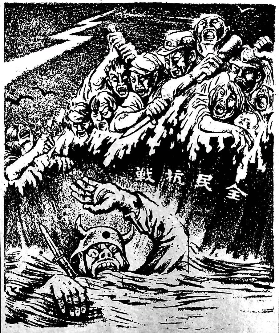 《惟有军民合作,才能消灭敌人。》张乐平 1938 年