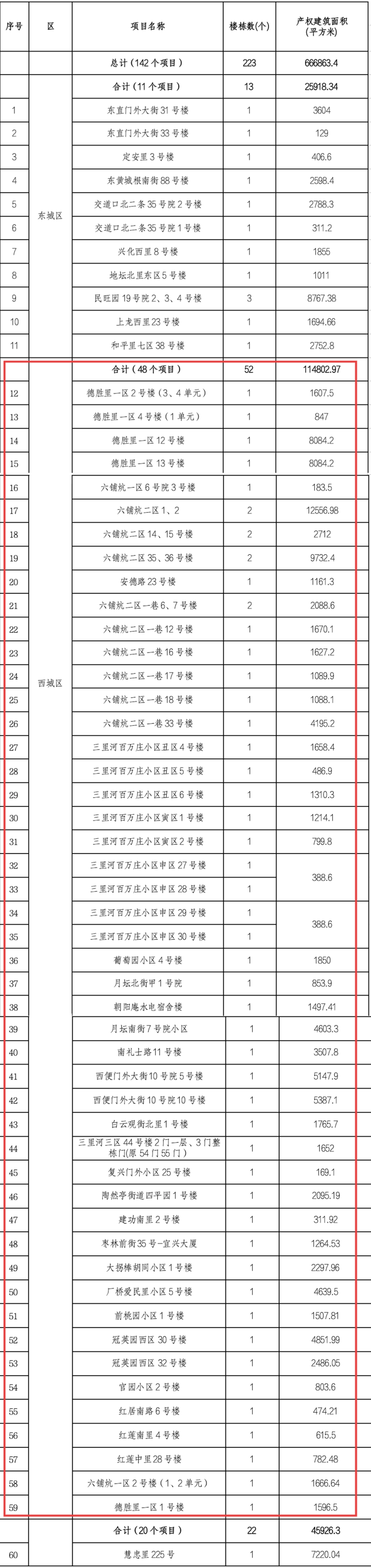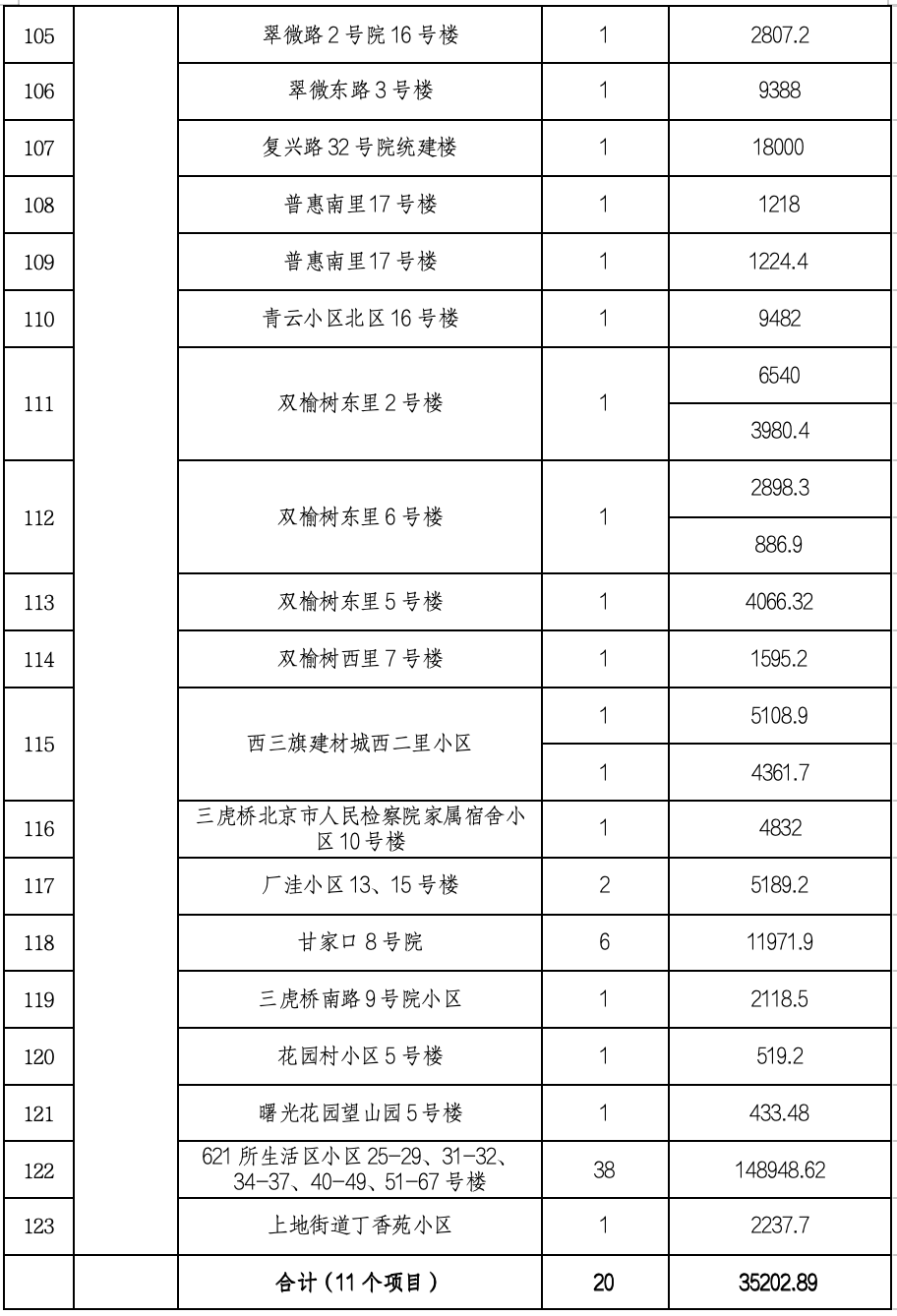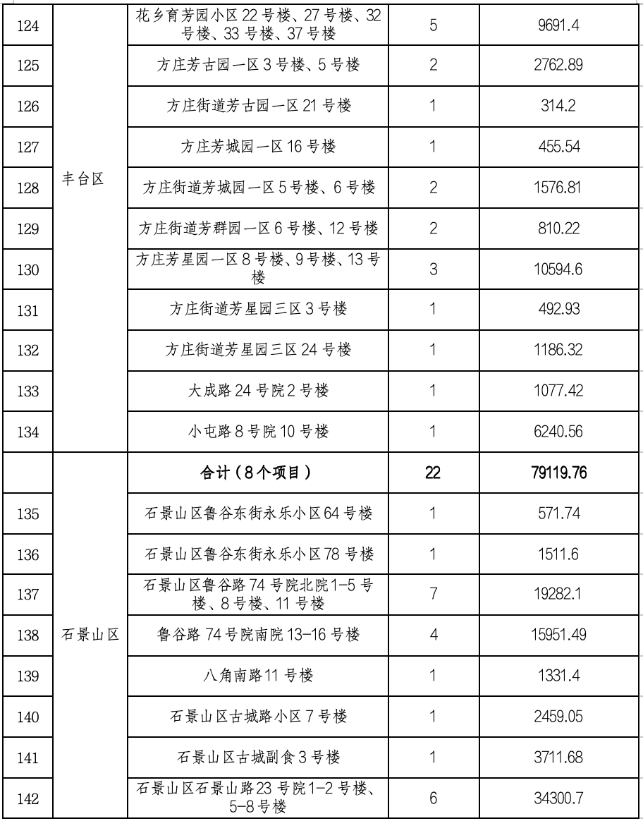 第四批申报的一共有160个项目,其中符合条件的有142个,它们分布在城六区,东城、西城、朝阳、海淀、丰台、石景山都有。共涉及223栋楼,总建筑面积约66.7万平米。