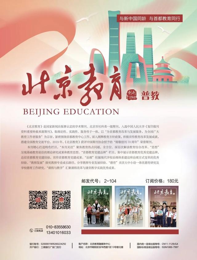 《北京教育》是国家新闻出版署认定的学术期刊,北京市社科类一级期刊,中国人民大学“复印报刊资料”重要转载来源期刊,集理论性、实践性、服务性于一体,以“为首都教育改革与发展服务,为全国广大教育工作者服务”为宗旨,紧密围绕首都教育中心工作,深入阐释教育方针政策,积极宣传教育改革发展成就,搭建全国教育交流平台。杂志获评“致敬创刊70年”荣誉期刊、第三十一届北京国际图书博览会“2025BIBF精品期刊展”推荐期刊,其文章被《新华文摘》《红旗文摘》《中国人民大学复印报刊资料》等全文转载,学习强国、北京号、中国教育新闻网等均推荐刊物重要文章。