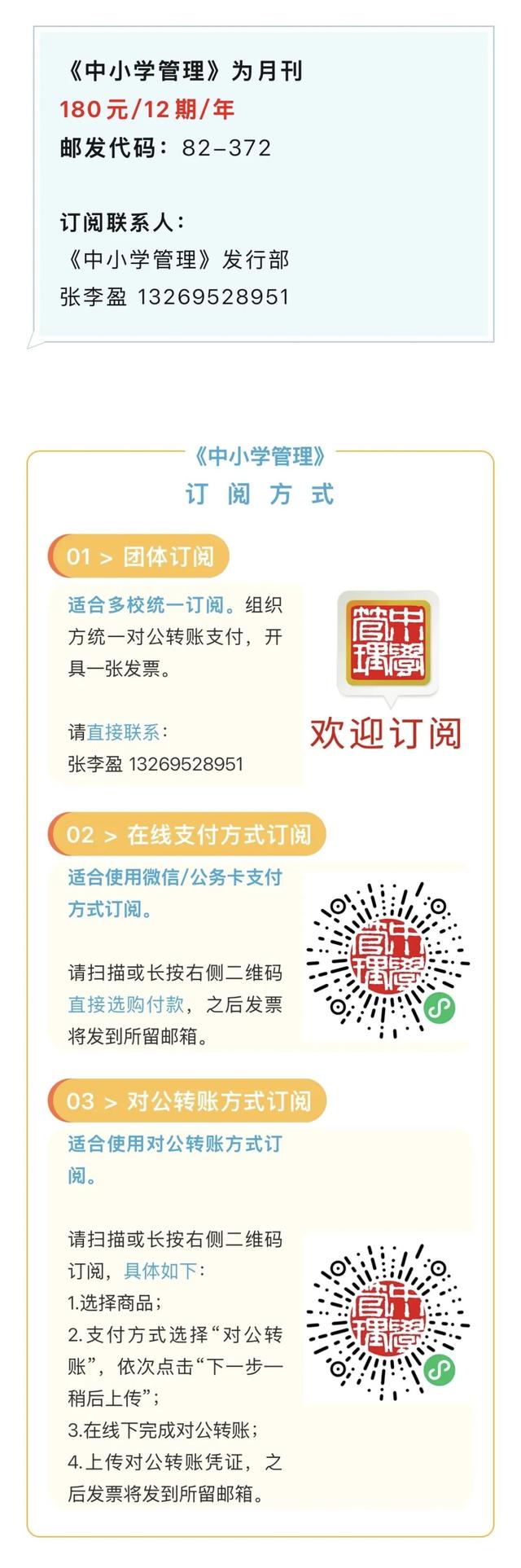 作为扎根实践的学术期刊,《中小学管理》始终秉持“助推本土教育理论创生,陪伴中小学管理者专业成长”的办刊理念,构架理论与实践之间的桥梁,在更好地服务于读者真实需求的同时,以刊物的建设为中间介质,构建理实相生的学术生态。