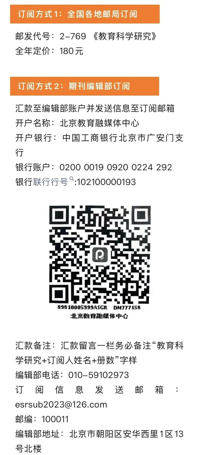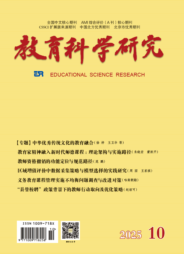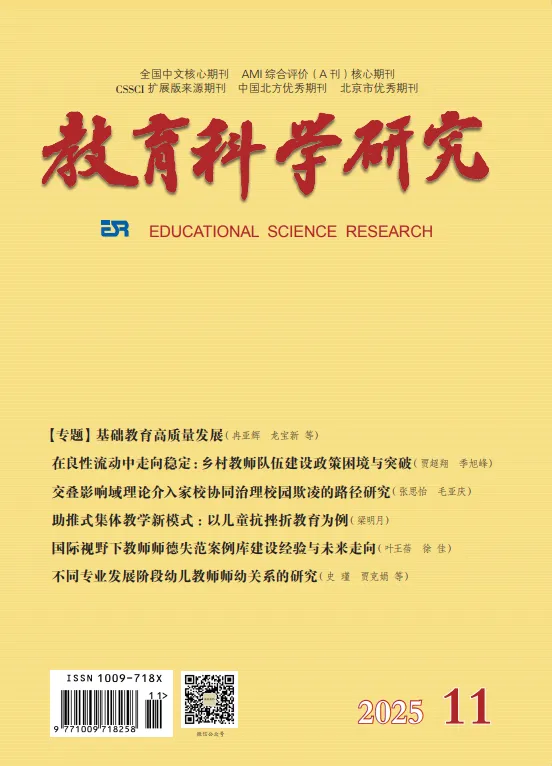 《教育科学研究》为综合性教育学术刊物,主要面向广大一线教师、校长,教育研究人员和教育行政管理人员 ;发表教育理论研究、教育政策评析、教育热点专论、教育问题调查、教育改革实验、比较教育研究等方面的最新成果 ;稿件以反映教育现实和实践问题为主,强调理论联系实际,坚持小问题深挖掘,低重心高质量。