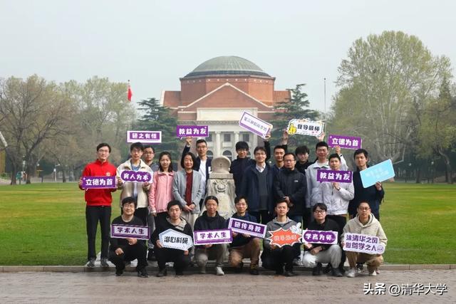荣获清华大学“良师益友”奖项后,许春晓和同学们在日晷前合影留念