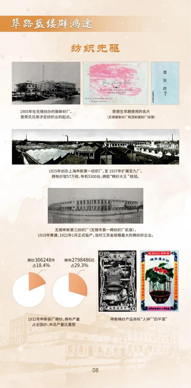 随后,申新纺织厂应运而生,逐步形成荣氏兄弟“面粉大王”“纺织大王”双业并举的格局,工厂遍布无锡、上海、武汉等地,成为民族工商业的中流砥柱。