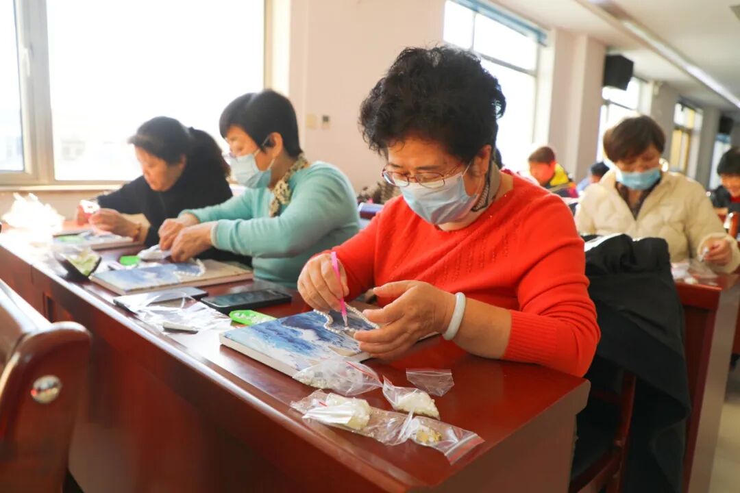 金盏东村组织开展手工珍珠画活动。居民们化身“海洋诗人”,在深浅不一的海浪背景画板上,以珍珠为墨,创作出一幅幅精美别致的珍珠艺术品,活动让生活暖意与艺术之美在初冬悄然绽放。
