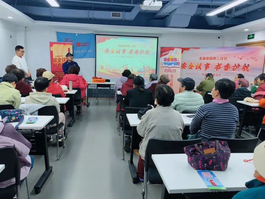 金盏嘉园第二社区开展 “安全议事、书香护航” 消防知识讲座。活动将消防技能与心脏复苏术教学相结合,内容实用又硬核。居民们认真学习灭火技巧、实操急救手法,在互动演练中掌握 “保命技能”,让安全理念深植心间,获得居民一致好评。