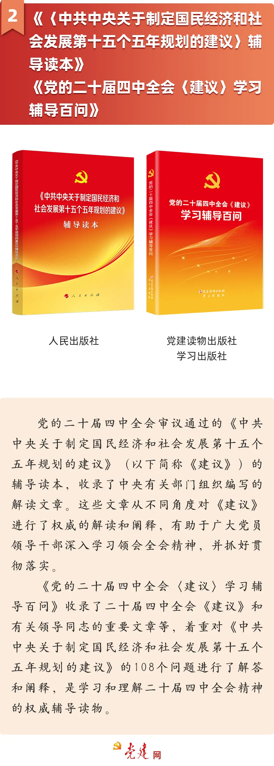 2. 《〈中共中央关于制定国民经济和社会发展第十五个五年规划的建议〉辅导读本》《党的二十届四中全会〈建议〉学习辅导百问》