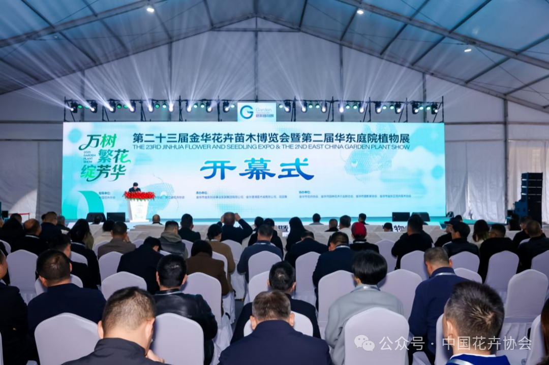 11月28日,第二十三届金华花卉苗木博览会暨第二届华东庭院植物展在金华市金东区澧浦花木城隆重开幕。中国花卉协会、浙江省林业局、金华市等有关单位领导和嘉宾出席开幕式。浙江省十二届人大常委会党组副书记、副主任程渭山宣布开幕。