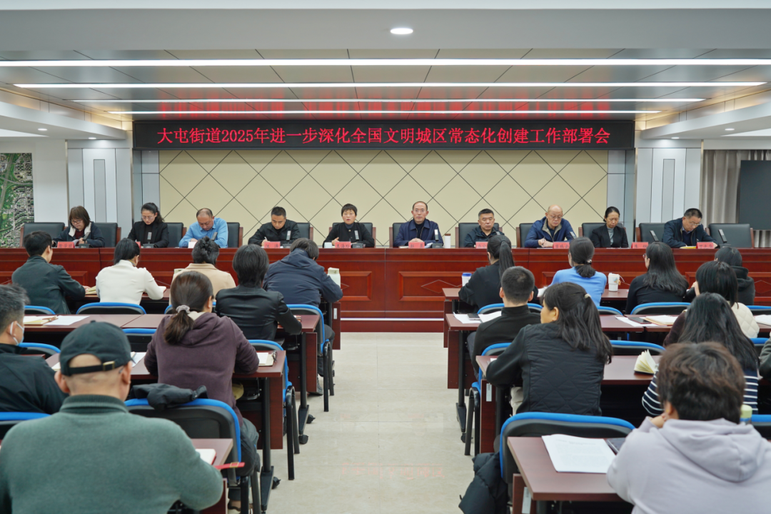 为全面巩固提升全国文明城区常态化创建工作成果,推动城市精细化治理水平提质升级,12月1日下午,大屯街道召开2025年进一步深化全国文明城区常态化创建工作部署会,对相关工作进行再安排、再部署。街道领导班子成员、各部门负责人、各社区党委书记参加会议。