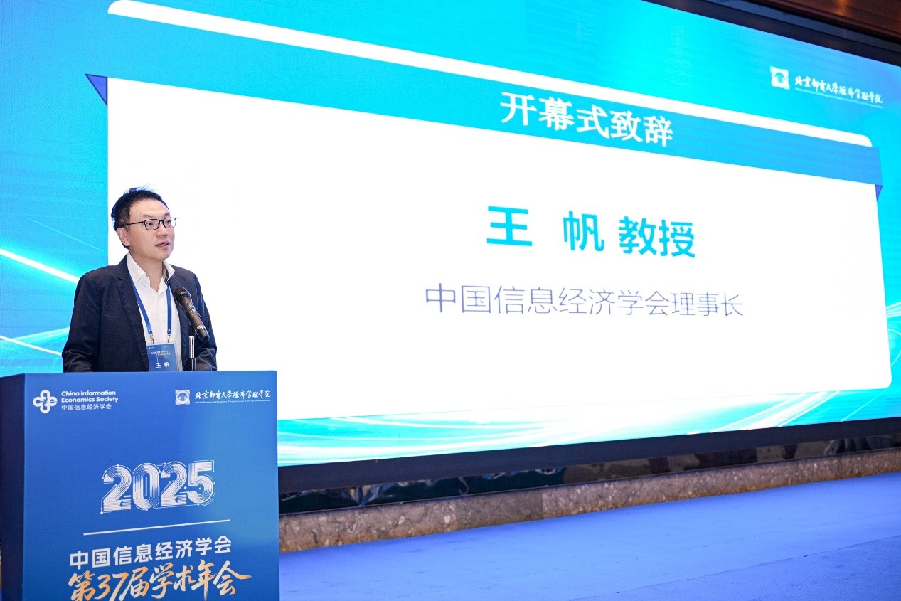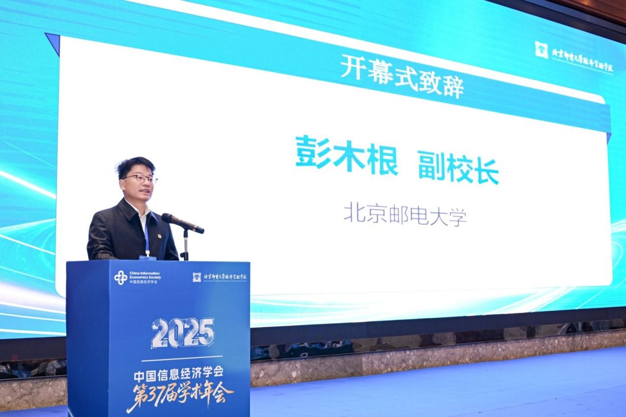 彭木根在致辞中表示,北京邮电大学自学会创立之初便深度参与其学术工作,未来愿继续携手学会,持续推动理论创新与实践结合,强化学术共同体建设,共同推进具有中国特色、国际影响的信息经济理论体系与实践范式。