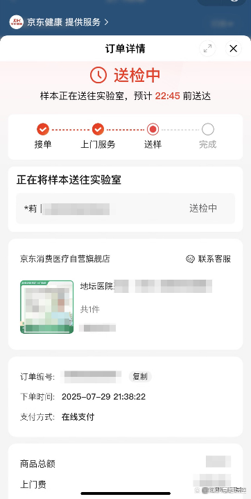 3.护士采样后,样本立即送至检验实验室。从预约护士上门到出具电子报告平均仅需3小时,全程进度实时可查。