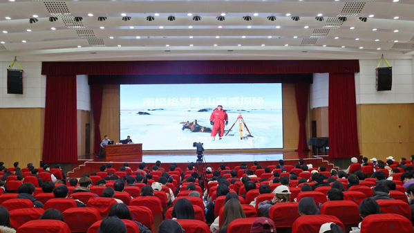 11月28日,中国首次南极格罗夫山科考队核心成员、武汉大学摄影测量与遥感专业博士霍东民受邀来到山东外事职业大学,以“南极格罗夫山遥感探秘”为题作专题讲座。讲座在图书馆报告厅举行,在场师生认真聆听报告,共同感悟南极科考背后的科技力量与使命担当。