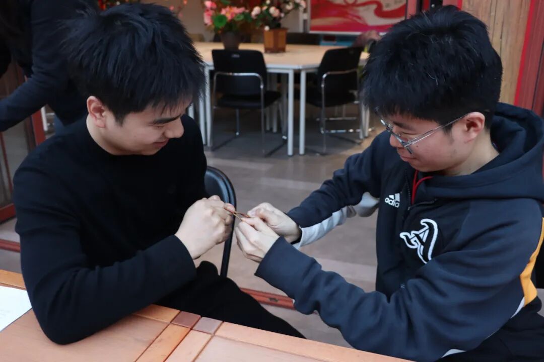 热场环节,充满老北京民俗特色的“拔根儿”游戏点燃现场氛围。年轻干部们手持叶梗、角逐韧劲,欢笑声、助威声此起彼伏,尽显青春朝气与竞技活力。