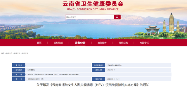今年3月24日,云南省卫生健康委、云南省教育厅等六部门就印发关于《云南省适龄女生人乳头瘤病毒(HPV)疫苗免费接种实施方案》的通知,为全省无HPV疫苗接种史且无接种禁忌的初一在校女生免费接种国产二价HPV疫苗,云南省各地积极响应,开展接种工作。