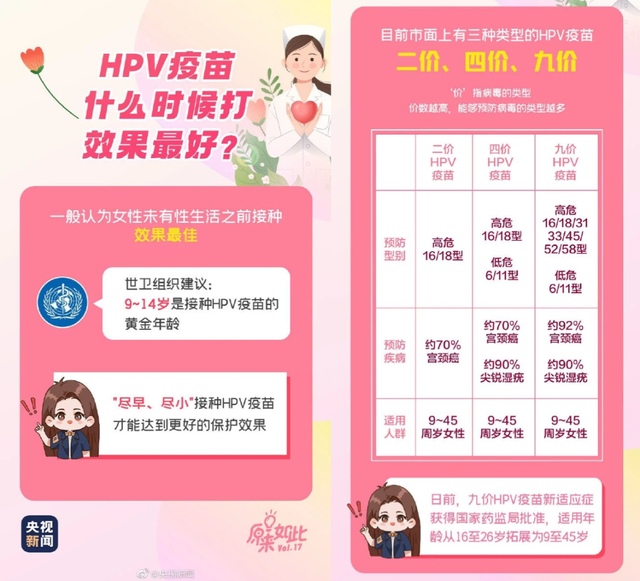 世界卫生组织(WHO)建议:9-14岁未发生性行为的女孩应该作为首要接种对象。原因有两点: