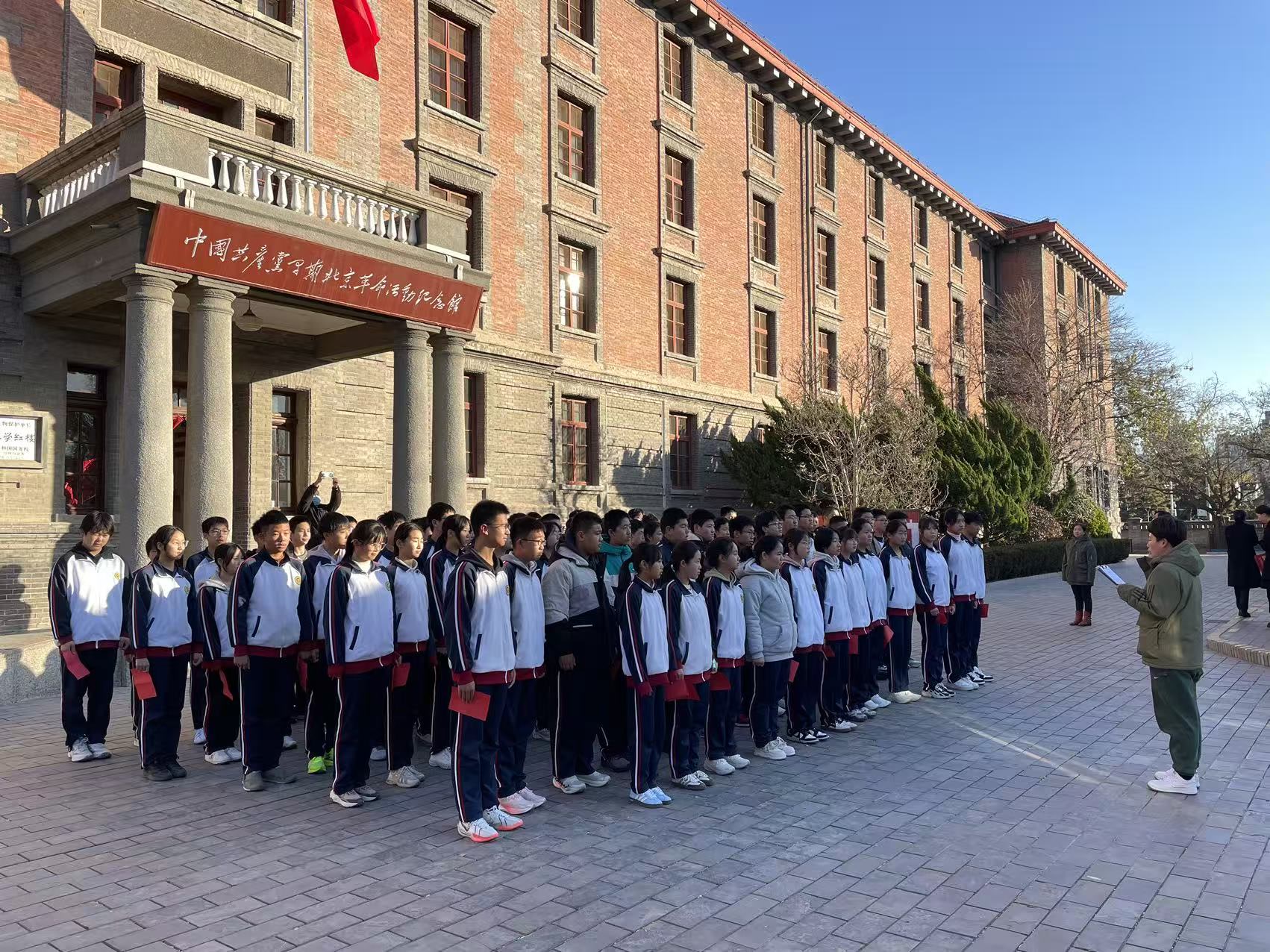 活动伊始,一场简短而庄重的启动仪式在北大红楼前拉开帷幕。全体同学齐声诵读《少年中国说》,“少年智则国智,少年富则国富;少年强则国强,少年独立则国独立……”铿锵有力的诵读声回荡在北大红楼广场,字字千钧、掷地有声。同学们身姿挺拔、眼神坚定,用饱满的热情诠释了新时代少年的责任与担当。