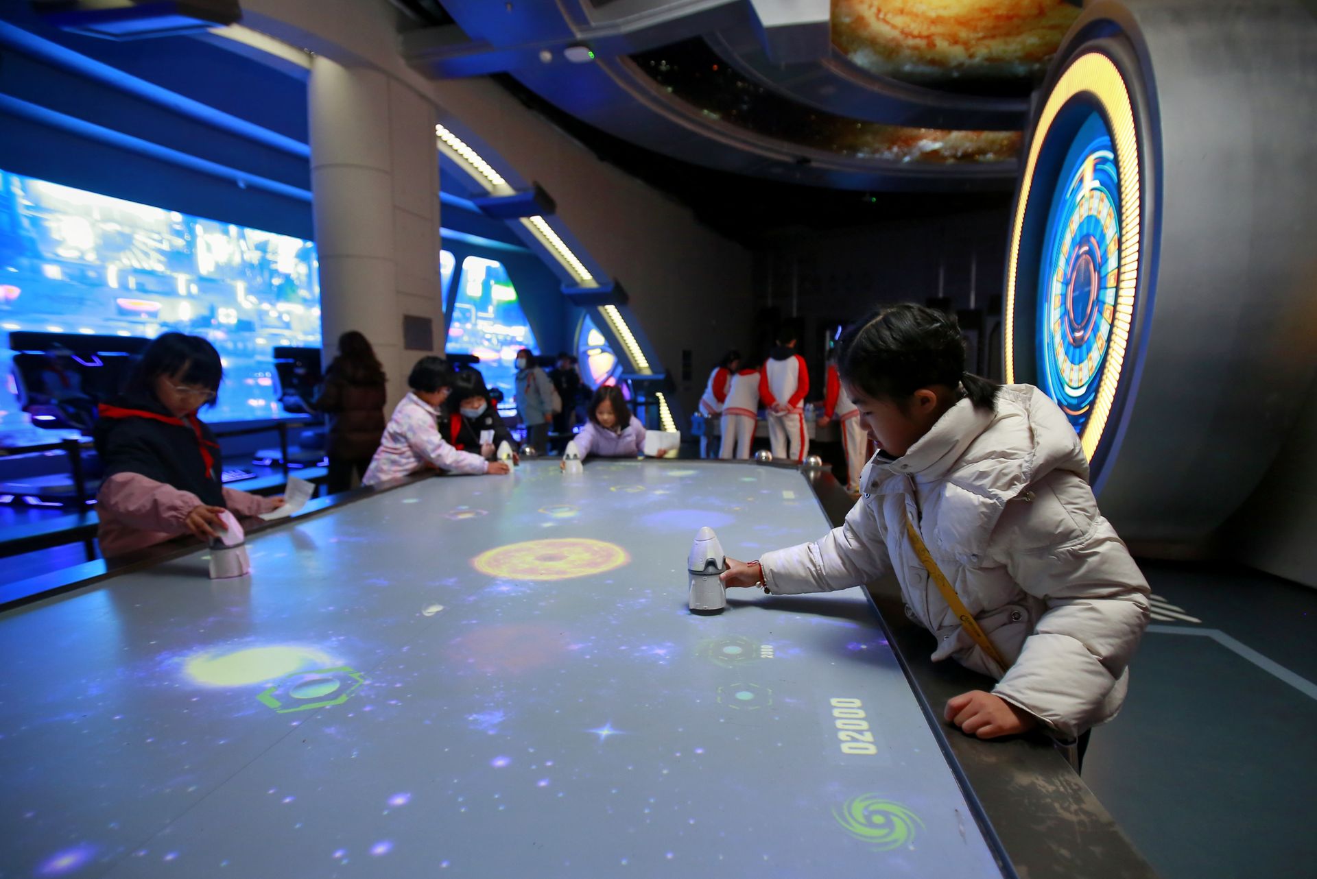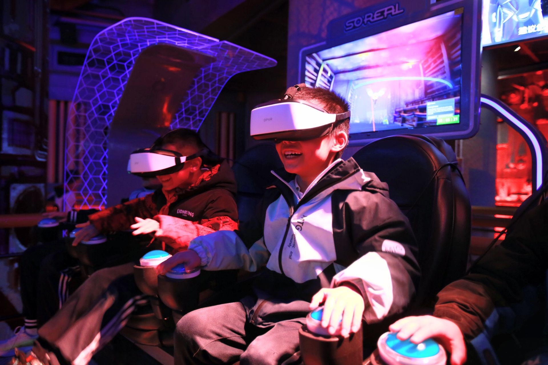 “戴上VR眼镜后,旋转和失重的感觉特别真实,就像真的在太空中遨游!”六年级学生董竞轩兴奋地分享体验感受,科幻乐园营造的身临其境的科幻感让他印象深刻。第一次来到太空主题乐园的王芊骅参加了克莱因挑战,她需要在超20米高的爬网设施中,感受一场太空梦幻漫步,她说:“配合着大屏幕播放的太空场景,有种真的置身空间站的感觉,既具挑战性又充满趣味。”“中国科技现在发展得太好了,希望未来能有更多这样的科幻乐园。”六年级(1)班学生张以沫满眼憧憬地说。